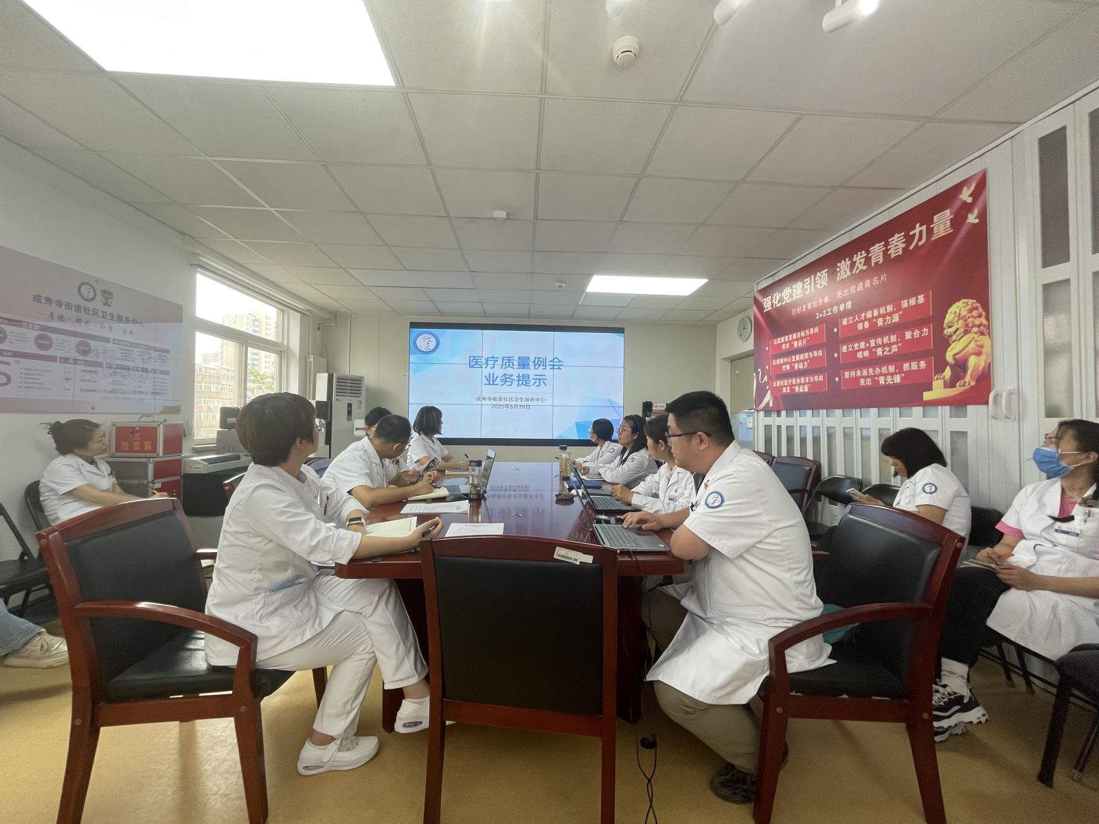为进一步提升医疗服务质量,保障患者就医安全,成寿寺街道社区卫生服务中心于5月30日下午在中心四楼会议室召开2025年5月医疗质量例会。本次会议由中心副主任张剑主持,各科室相关人员参与会议。